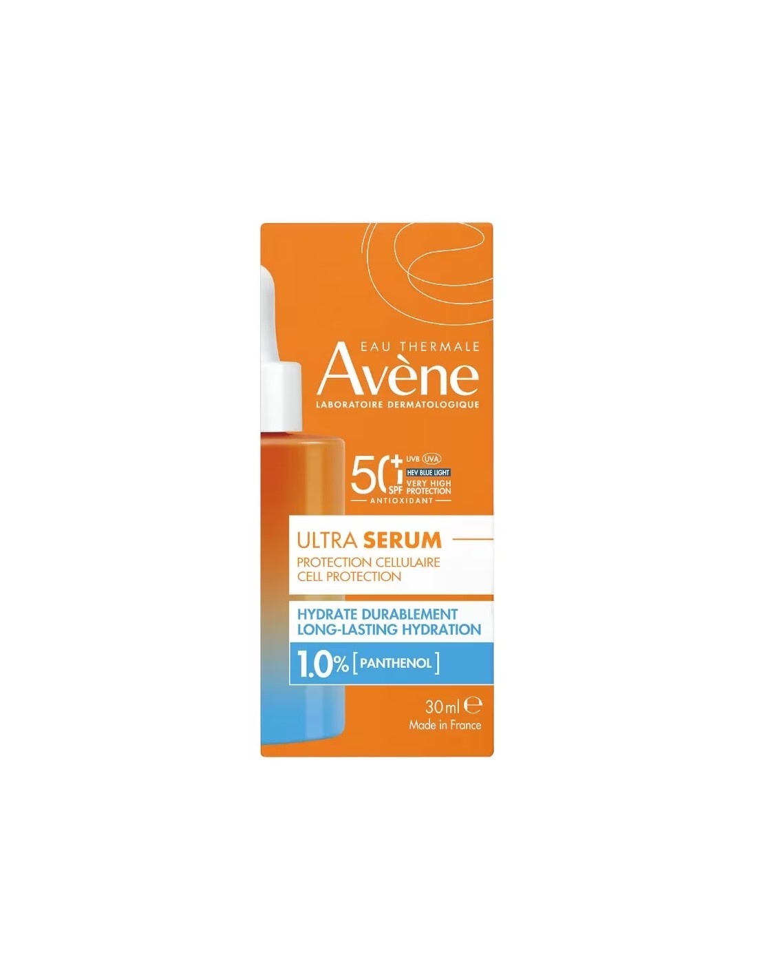 Ultra Serum Hidratación Duradera de Avene es un sérum facial ultraligero que combina protección solar muy alta FPS50+ con una acción hidratante intensa y duradera. Su fórmula protege la piel frente a rayos UVB, UVA, luz azul HEV y estrés oxidativo gracias al sistema fotoprotector Triasorb™ y un complejo de vitaminas antioxidantes. En paralelo, el Pantenol aporta hidratación inmediata y prolongada, ayudando a mantener la piel suave, flexible y protegida frente al fotoenvejecimiento y agresiones externas.