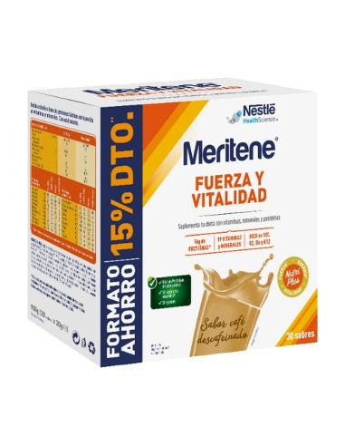 MERITENE FUERZA Y VITALIDAD SABOR CAFÉ DESCAFEINADO 30 SOBRES