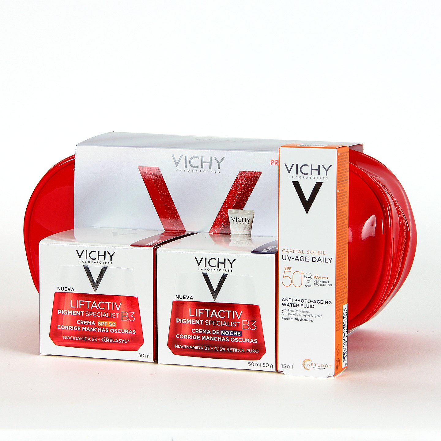 El neceser de Vichy Protocolo Antimanchas es la rutina ideal para unificar el tono de la piel, reducir manchas oscuras y prevenir la aparición de nuevas imperfecciones. Su combinación de activos dermatológicos y fotoprotección avanzada ofrece una piel más luminosa, uniforme y protegida frente a los rayos UV y el envejecimiento prematuro.